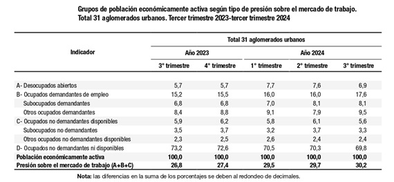 Desaceleración del PIB vs. Empleo: A pesar de que la economía mostró una contracción del 2,1% en el tercer trimestre de 2024, el empleo asalariado formal experimentó una caída aún mayor, de un 2,6%. Este desajuste sugiere que el crecimiento económico no siempre genera empleo de manera proporcional, especialmente cuando se enfrenta a crisis estructurales o cuando el empleo formal es afectado por factores adicionales, como la alta inflación o las políticas fiscales restrictivas.